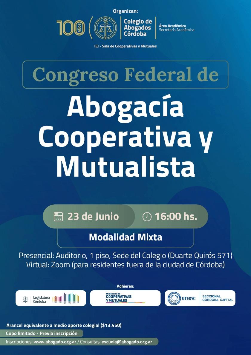 En el Año Internacional de las Cooperativas, el 23 de junio a las 16:30 se realizará un Congreso Interprovincial en el Colegio de Abogados de Córdoba.